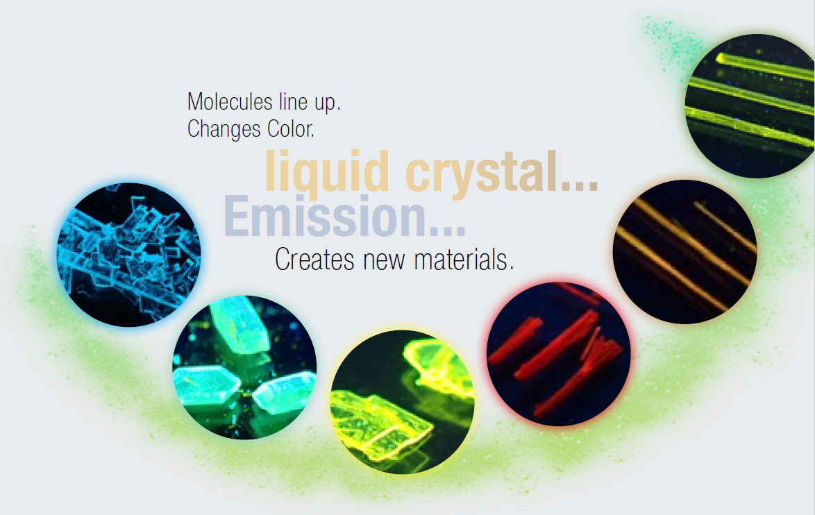 フッ素化合物の選択合成法の開発、液体でも光るトラン型固体発光分子の創製などさまざまな研究をしていますが、現在力を入れているテーマの1つは、外部からエネルギーを与えたときに発光特性が変化する材料の開発です。ただ、発光材料を扱っている研究室は本学だけでもいくつかあるので、私は自分の研究を特徴づけるために液晶に注目した研究を展開しています。