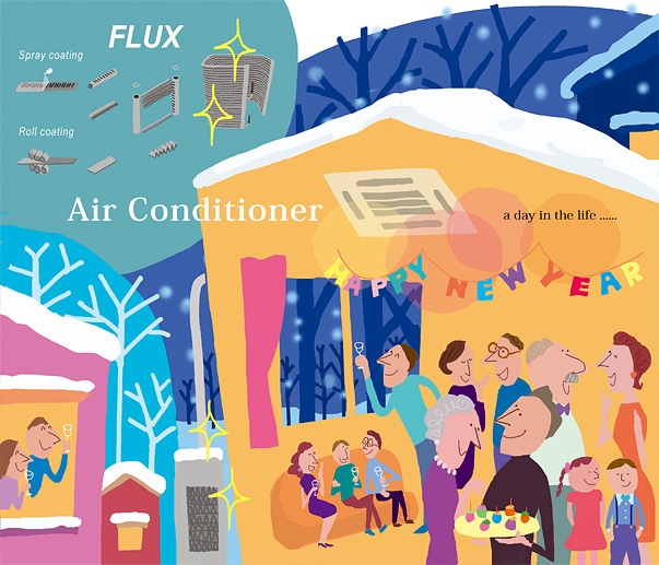 このろう付け方式では、ろう付けを阻害するアルミ表面の酸化膜を除去してくれるフラックスと呼ばれる粉体原料をろう付け寸前まで部品の表面につけておく必要がありますが、適正な量の粉体原料をろう付け前に部品全体へ満遍なく留まらせておくのが至難の業。フラックスの粉を振りかけたり、水に溶いたフラックスをスプレー塗布したりしても、すぐにフラックスが落ちたり、場所によって付着量に偏りができたりしてしまいます。